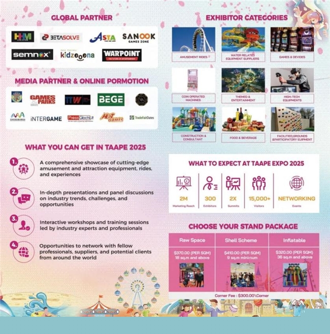 由中國動漫集團有限公司、泰國COMPASS集團、廣東鴻威會展集團聯(lián)合主辦的2025泰國文化用品、旅游裝備及景區(qū)游樂設施博覽會(TAAPE2025)是泰國知名游樂休閑類展會。該展會設立了水上裝備、游樂設施、戶外游樂、電子游樂設備等多個主題,展出內容豐富多樣,包括IP授權與合作展區(qū)、衍生品設計與制造展區(qū)、手辦與模型展區(qū)等多個展區(qū)。此次展會恰逢中泰建交50周年重要歷史時刻,依托泰國作為東盟樞紐的區(qū)位優(yōu)勢,創(chuàng)新性地將傳統(tǒng)文化用品、旅游裝備與前沿元宇宙技術相結合,打造了全方位、多層次的文化貿易交流平臺。
